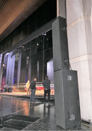 本次使用了Aalas EM806A和EW410A有源線陣擴(kuò)聲音箱作為一層觀眾席主擴(kuò)聲音箱,使用8只SM12CXT同軸返送音箱和HPA系列數(shù)字功放。Atlas EM806A線陣列音箱,采用獨(dú)特的帶式高音技術(shù)讓真正的線聲源成為可能,帶式高音單元的平面結(jié)構(gòu)決定了其單元間距更小,每個(gè)單元的投射角度幾乎為“0”度,因此,單元間可以在沒有干擾的情況下自然耦合,相位一致性得到了極大的提升。通過內(nèi)置的DSP和高效D類功放,使專業(yè)揚(yáng)聲器系統(tǒng)達(dá)到了HI-FI水準(zhǔn)。