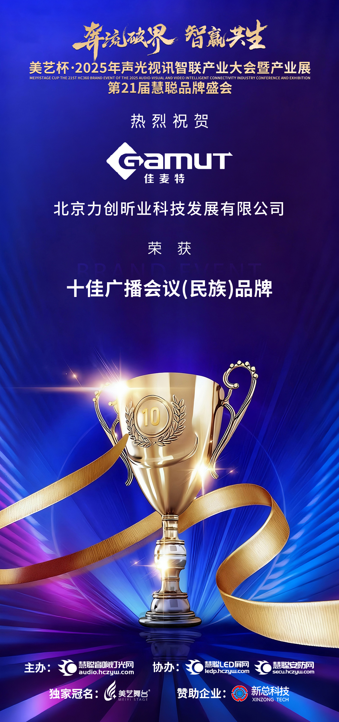 喜報 | 力創(chuàng)昕業(yè) GAMUT(佳麥特)斬獲 "美藝杯?2025 十佳廣播會議(民族)品牌"