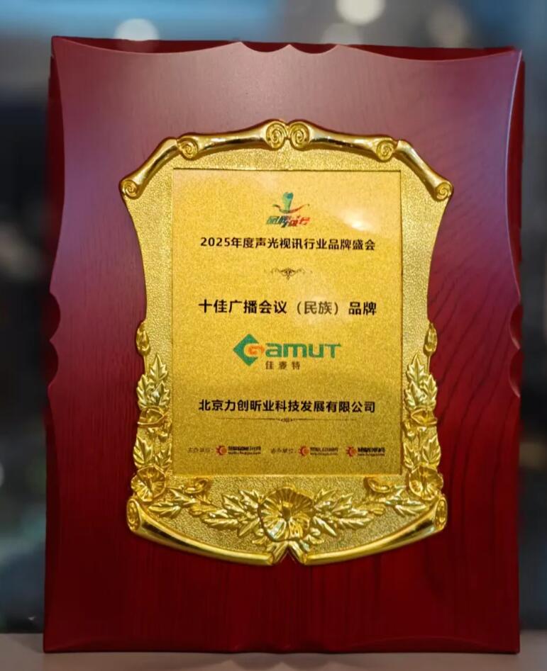 在同期舉辦的品牌盛典中,力創(chuàng)旗下品牌GAMUT(佳麥特) 憑借卓越的產(chǎn)品品質(zhì)與技術(shù)創(chuàng)新能力,榮獲 “十佳廣播會議(民族)品牌” 大獎。